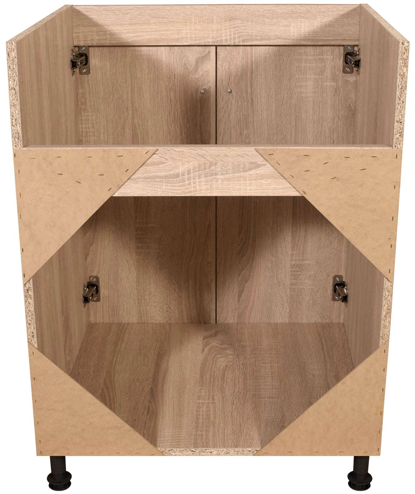 Skříňka je dvoudveřová. Prostor ve skřínce je primárně vyhrazen pro dřez a není tedy rozdělen policí. Ke skříňkám jsou zdarma úchytky Diana. Součáští objednávky je přední sokl.