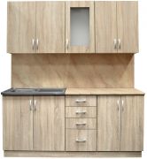 Vyrobeno z kvalitní laminované dřevotřískové desky s ABS hranami (plastové hrany). Povrch skříňky je snadno omyvatelný. Spodní skříňky jsou na retifikačních nožkách. Můžete si dokoupit kvalitní, voděodolný sokl, také vodovodní baterii, závěsnou lištu a pracovní desku.