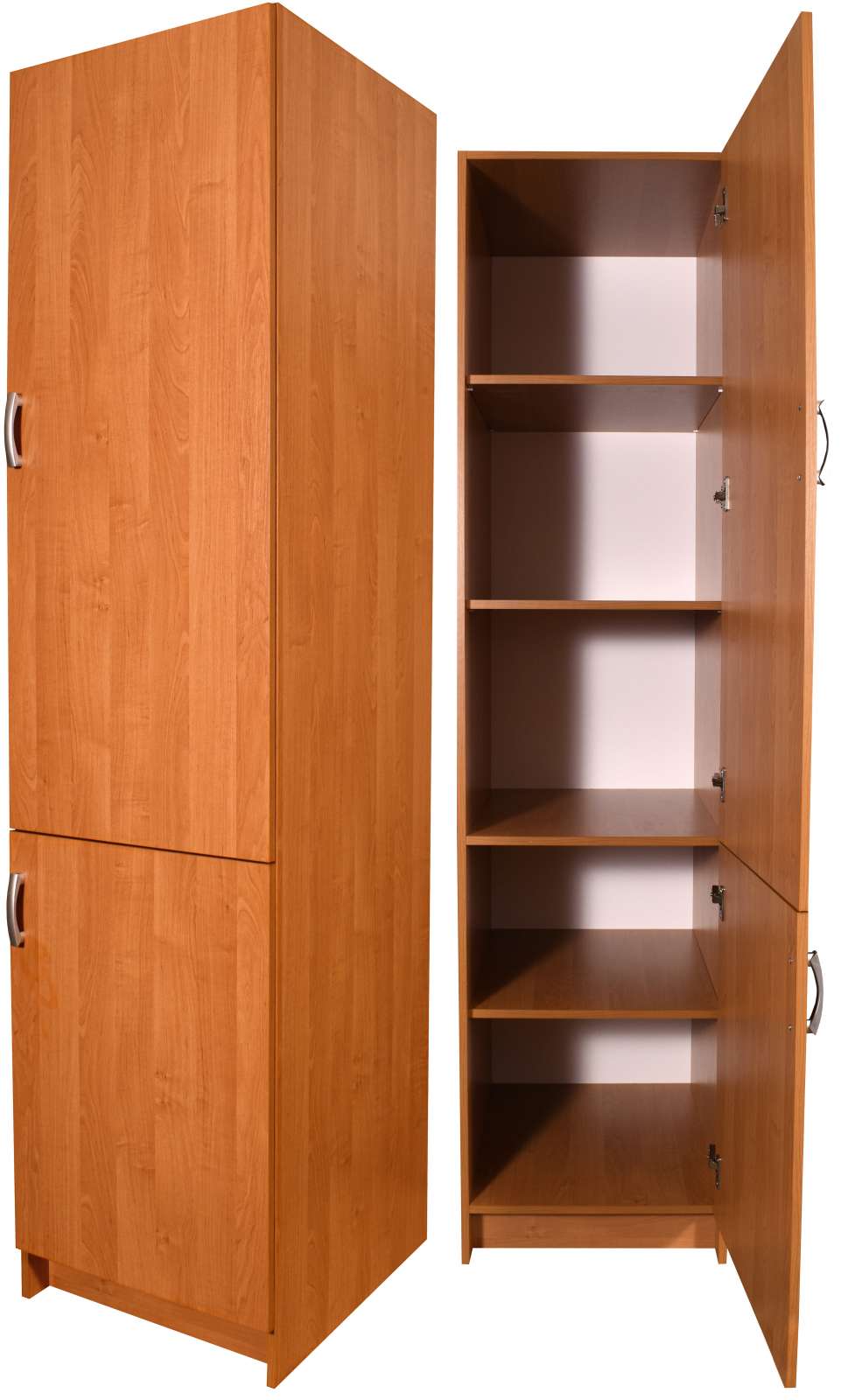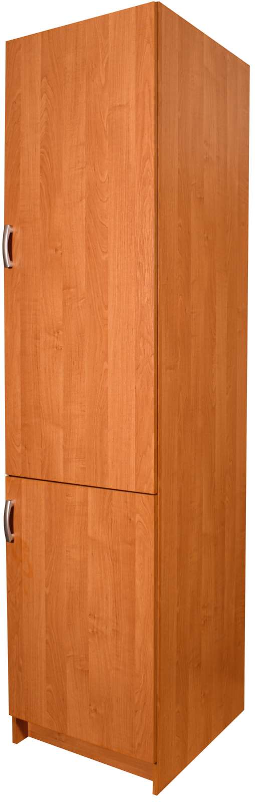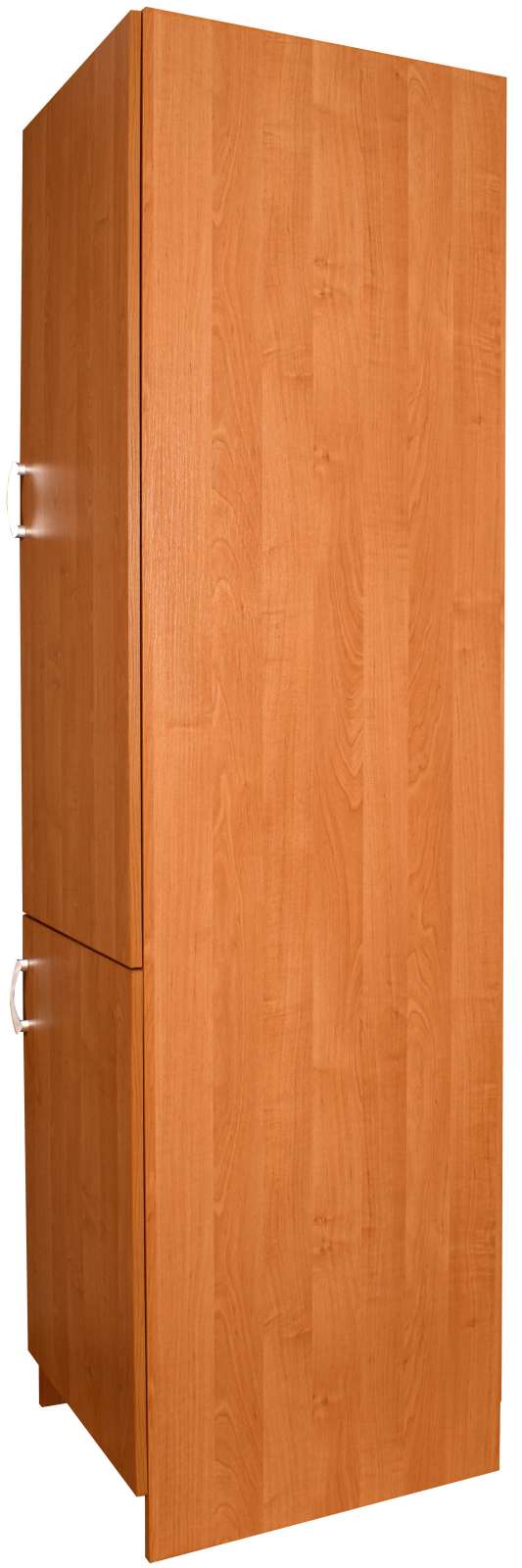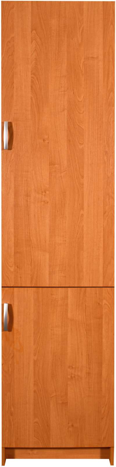 - Rozměry: Potravinová skříň do kuchyně je 50 cm široká, 206 cm vysoká i se soklem a 58 cm hluboká i s dvířky. Hloubka korpusu je 56 cm. Za skříňkou již není žádný prostor pro vedení vody, plynu, elektrické zásuvky apod. V dolní části je jedna a v horní jsou dvě volné police.
