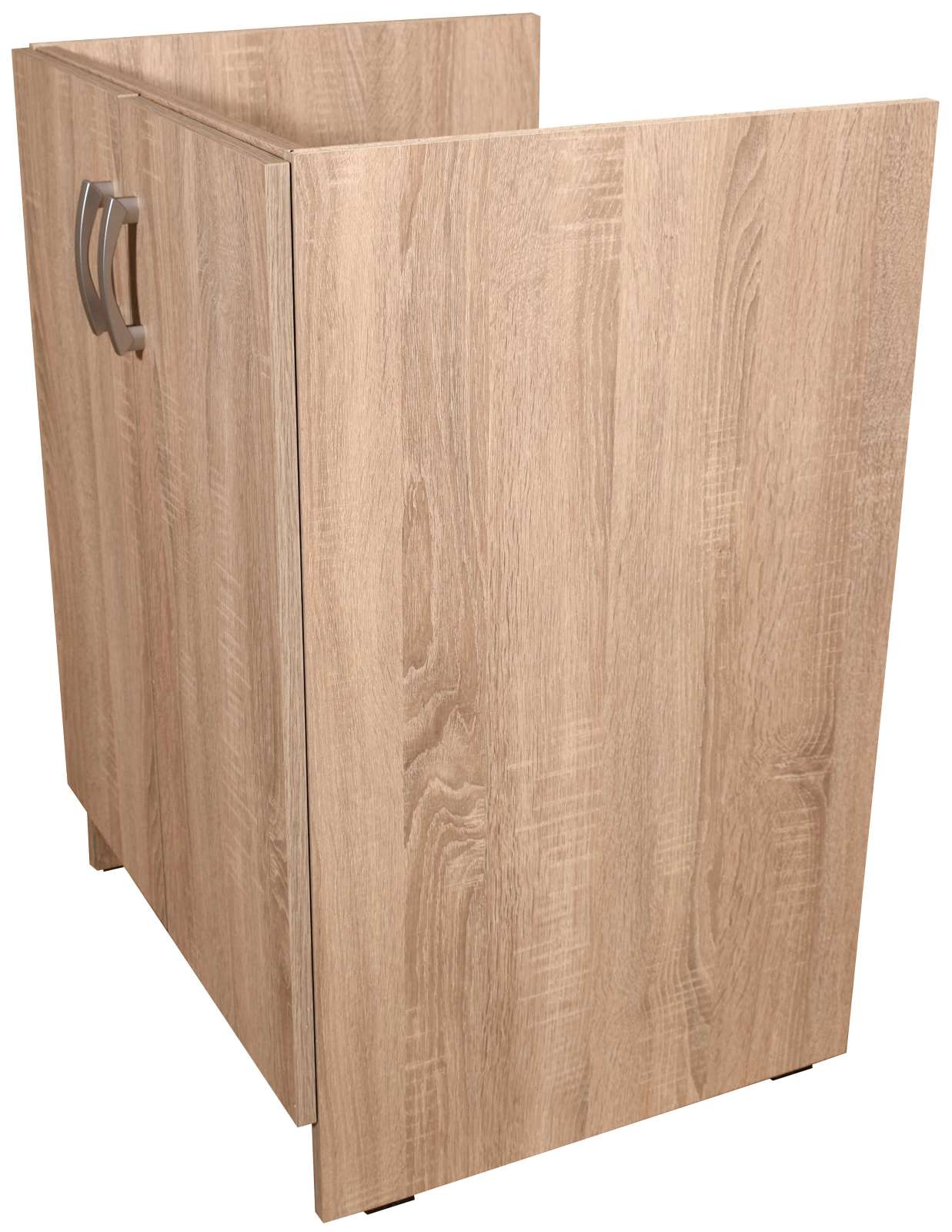 Skříňka pod dřez je dvoudveřová. Prostor ve skřínce je primárně vyhrazen pro dřez a není tedy rozdělen policí. Součástí objednávky je přední sokl.