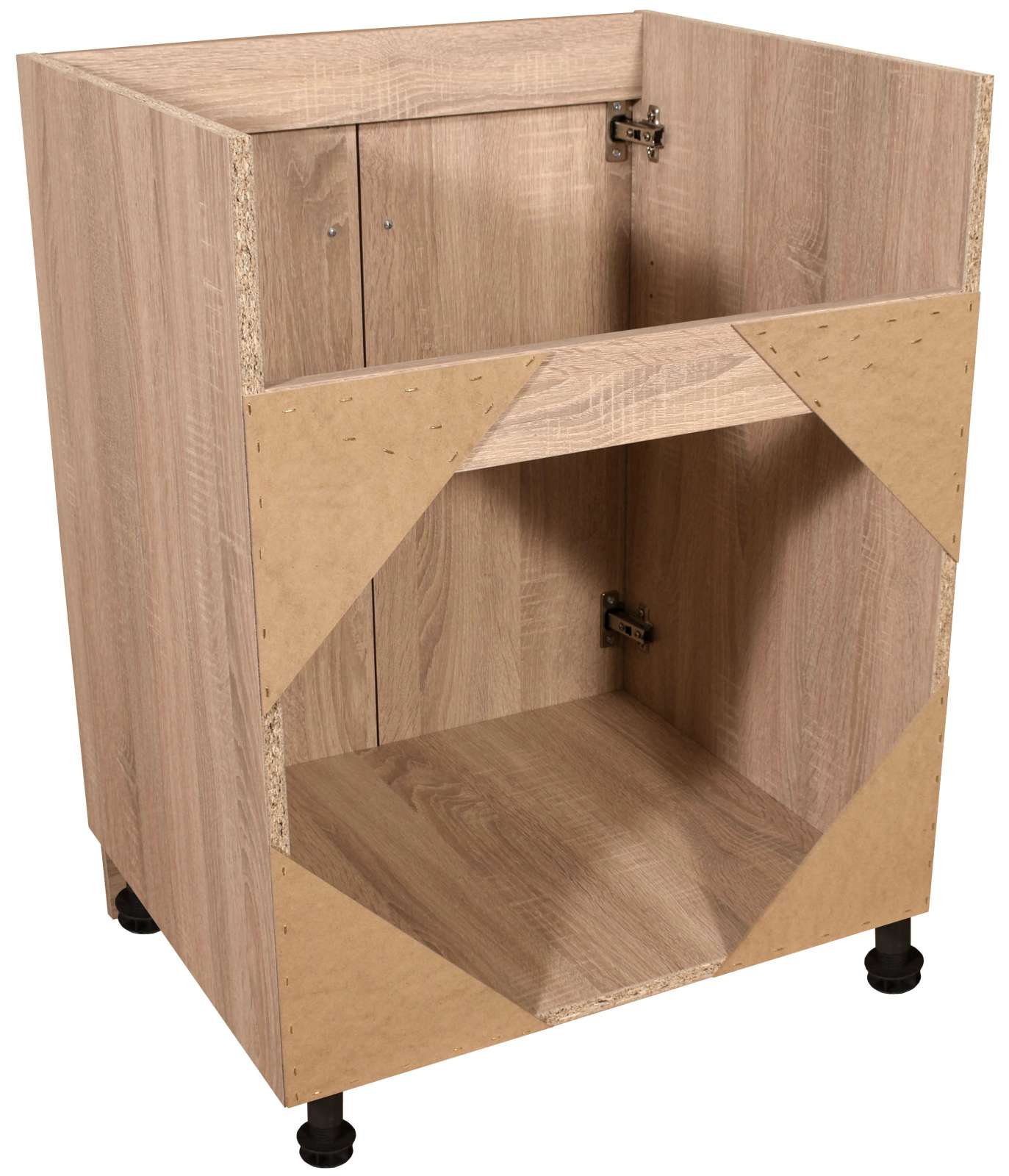 - Smontované kuchyňské skříňky pod dřez z laminované dřevotřísky o tloušťce 16 mm s plastovou hranou ABS