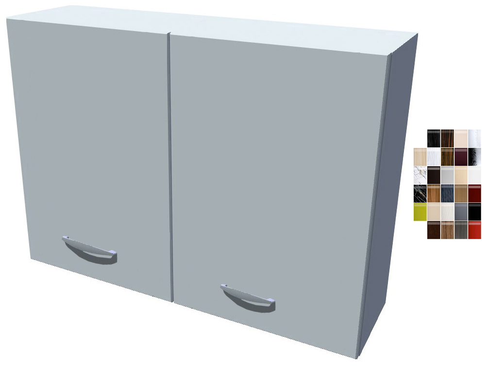 100 cm široká skříňka je dvojdveřová, vysoká72 cm. Hloubka korpusu je 30 cm a i s dvířky nepřesáhne celková hloubka skříňky 32 cm. Uvnitř skříňky jsou dvě police. Skříňka má nastavitelné úchyty pro upevnění na závěsné liště.