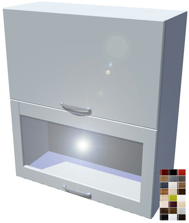 Skříňku skládájící se z dvířek a těla (korpusu) dodávám již smontovanou. Před vložením zboží do košíku zvolte v nabídce pod tímto textem mechaniku otevírání, výšku skříňky, typ skla, barvu dvířek a korpusu. Barvy můžete libovolně kombinovat. Dvířka jsou předvrtaná pro úchytky Carmen s roztečí 128 mm, které jsou ke skříňce zdarma a nebo si vyberte jiné ZDE.