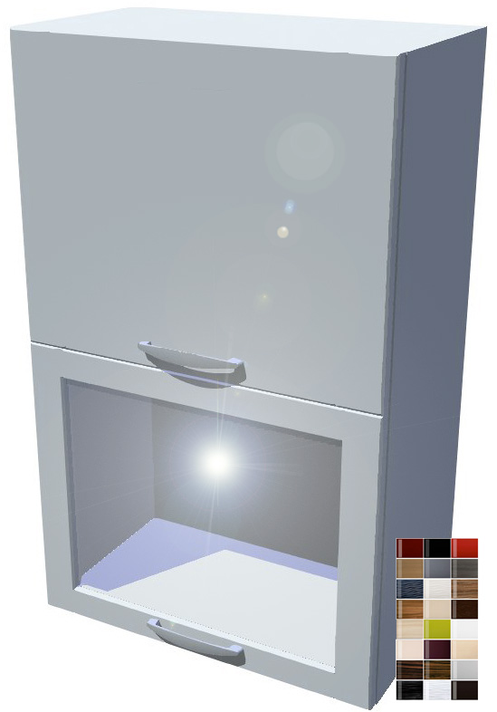 Skříňku skládájící se z dvířek a těla (korpusu) dodávám již smontovanou. Před vložením zboží do košíku zvolte v nabídce pod tímto textem mechaniku otevírání, výšku skříňky, typ skla, barvu dvířek a korpusu. Barvy můžete libovolně kombinovat. Dvířka jsou předvrtaná pro úchytky Carmen s roztečí 128 mm, které jsou ke skříňce zdarma a nebo si vyberte jiné ZDE.