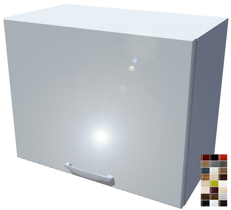 Dvířka jsou z lesklé MDF, tedy fólie na dřevovláknité desce. Povrch dvířek, kromě vzhledu a možnostem výběru, vyniká také dlouhou životností a snadnou údržbou. Korpus skříňky je vyrobený z laminované dřevotřískové desky a má hrany z ABS, které ho chrání před vlhkostí a mechanickým poškozením.