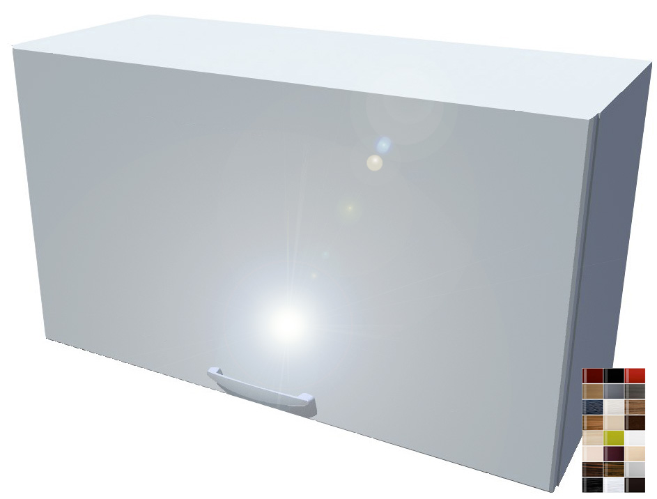 Dvířka jsou z lesklé MDF, tedy fólie na dřevovláknité desce. Povrch dvířek, kromě vzhledu a možnostem výběru, vyniká také dlouhou životností a snadnou údržbou. Korpus skříňky je vyrobený z laminované dřevotřískové desky a má hrany z ABS, které ho chrání před vlhkostí a mechanickým poškozením.