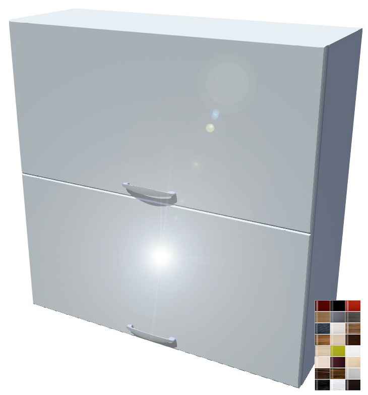 Dvířka jsou z lesklé MDF, tedy fólie na dřevovláknité desce. Povrch dvířek, kromě vzhledu a možnostem výběru, vyniká také dlouhou životností a snadnou údržbou. Korpus skříňky je vyrobený z laminované dřevotřískové desky a má hrany z ABS, které ho chrání před vlhkostí a mechanickým poškozením.