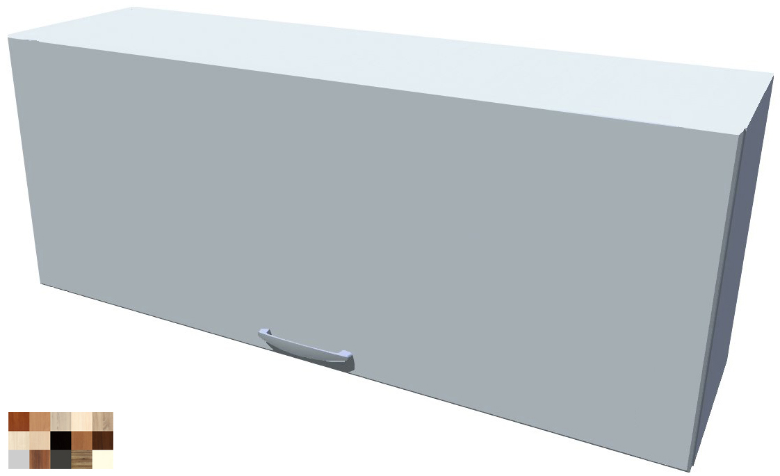 100 cm široká a 40 cm vysoká skříňka má jeden výklop. Hloubka korpusu je 30 cm a i s dvířky nepřesáhne celková hloubka skříňky 32 cm. Skříňka je bez police, obsahuje mechanizmus k zavěšení na závěsnou lištu.