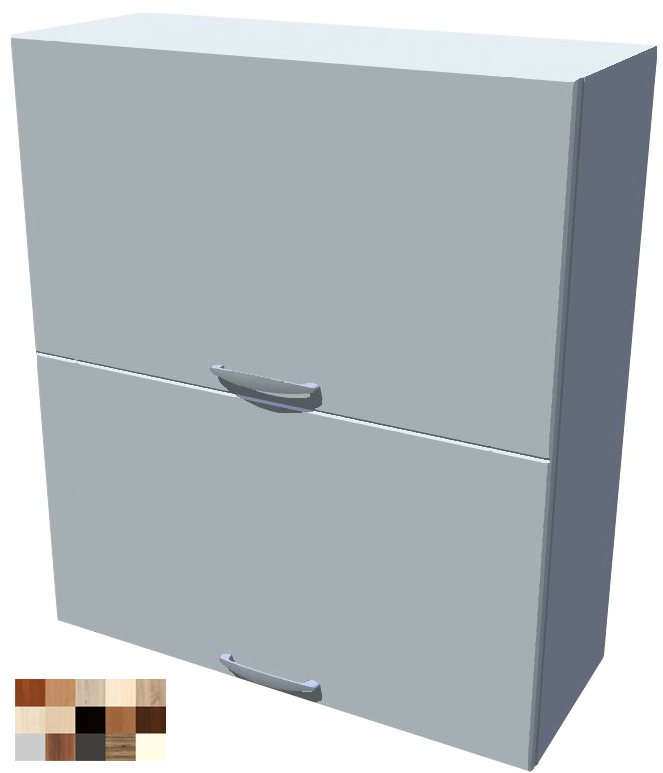 70 cm široká skříňka má dva výklopy. Skříňku dodávám ve dvou provedeních - s výškou 72 cm nebo 80 cm. Hloubka korpusu je 30 cm a i s dvířky nepřesáhne celková hloubka skříňky 32 cm. Skříňka je bez polic, obsahuje mechanizmus k zavěšení na závěsnou lištu.