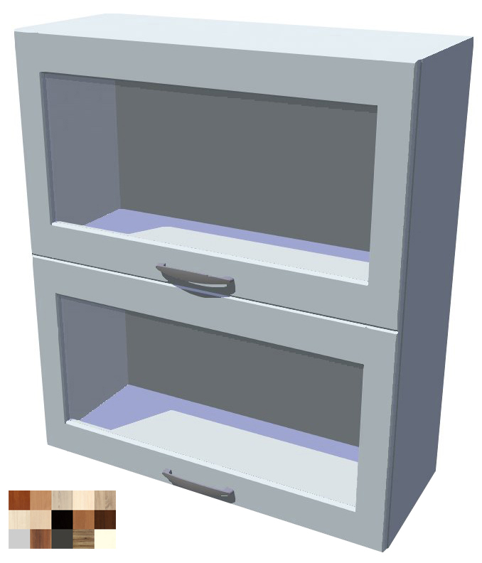 70 cm široká skříňka má dva výklopy. Skříňku dodávám ve dvou provedeních - s výškou 72 cm nebo 80 cm. Hloubka korpusu je 30 cm a i s dvířky nepřesáhne celková hloubka skříňky 32 cm. Skříňka je bez polic, obsahuje mechanizmus k zavěšení na závěsnou lištu.