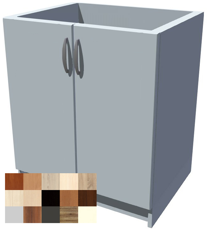 70 cm široká skříňka je dvojdveřová, na pevném soklu vysokém 10 cm. Celková výška i se soklem je 82 cm. Hloubka korpusu je 50 cm a i s dvířky nepřesáhne celková hloubka skříňky52 cm. Díky tomu za skříňkou vzniká prostor cca 6 cm pro vedení vody, plynu, zásuvek apod. Uvnitř skříňky je jedna police. Vršek skříňky je otevřený, jsou zde umístěny pouze příčky k uchycení pracovní desky.