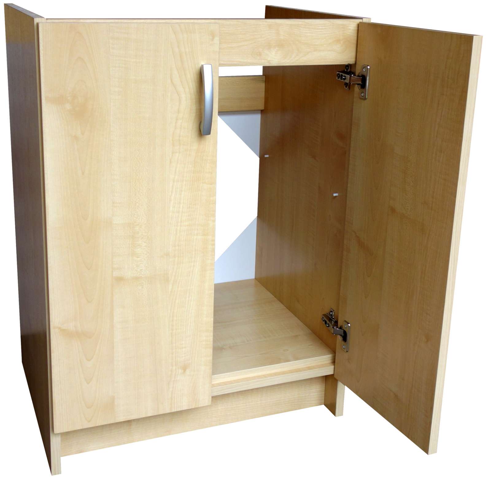60 cm široká skříňka je dvojdveřová, na pevném soklu vysokém 10 cm. Celková výška i se soklem je 82 cm. Hloubka korpusu je 50 cm a i s dvířky nepřesáhne celková hloubka skříňky 52 cm. Díky tomu za skříňkou vzniká prostor cca 6 cm pro vedení vody, plynu, zásuvek apod. Skříňka je bez police. Vršek skříňky je otevřený, uzpůsobený pro uchycení dřezu.