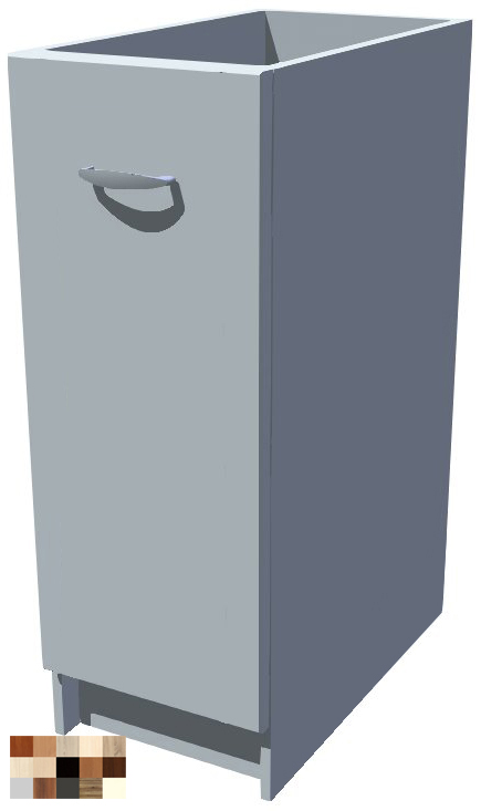 Pokud bude skříňka umístěna z boční pohledové strany kuchyňské linky (tedy je krajní skříňkou na otevřeném konci linky), je nutné použít boční přířez. Přířez objednáte ve volbě "Boční přířez" níže. Úhelníky k uchycení přířezu ke skříňce nejsou součástí.