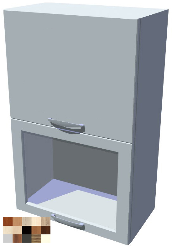 50 cm široká skříňka má dva výklopy. Skříňku dodávám ve dvou provedeních - s výškou 72 cm nebo 80 cm. Hloubka korpusu je 30 cm a i s dvířky nepřesáhne celková hloubka skříňky 32 cm. Skříňka je bez polic, obsahuje mechanizmus k zavěšení na závěsnou lištu.