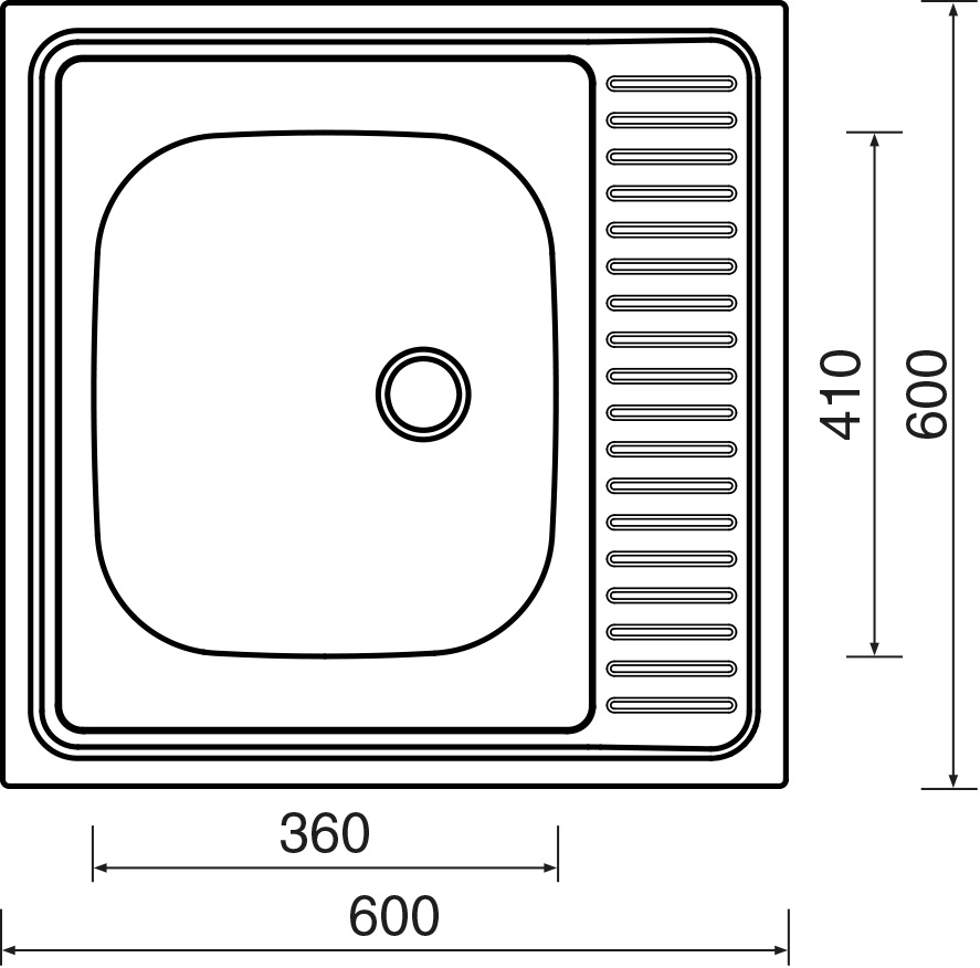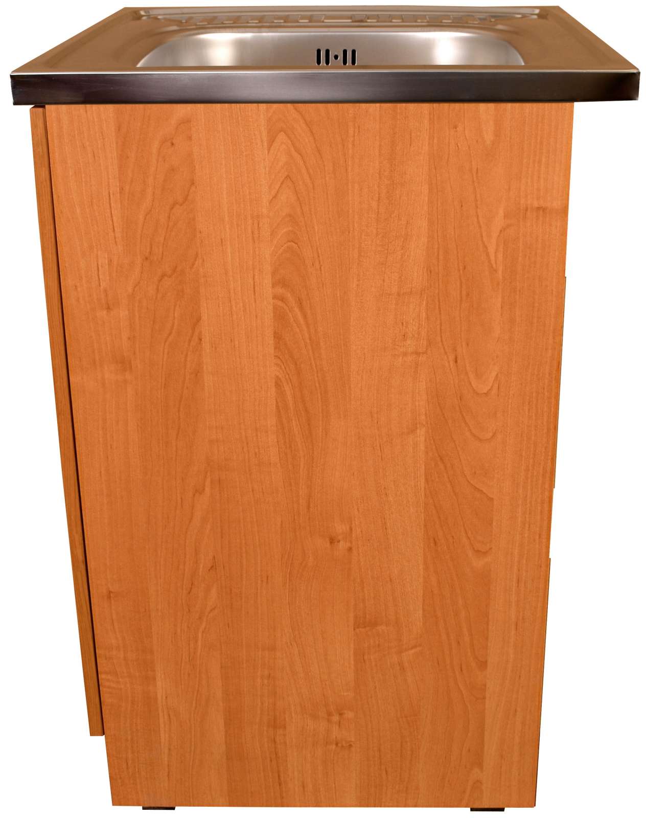 Celoplošný nerezový dřez s odkapem 60 x 60 x 3 cm je dodáván zvlášť . Dřez je nerezový o síle plechu 0,5 mm a dodávám ho včetně sifonu. Umísťuje se přímo na dřezovou skříňku šíře 60 cm pomocí montážní sady nebo montážním lepidlem(není součástí). Hloubka vaničky je 15 cm. Je oboustranný, tedy ho lze umístit s vaničkou vlevo i vpravo. Dřez nemá otvor pro stojánkovou baterii, lze doobjednat formou poznámky v objednávce, ale je nutné napsat orientaci dřezu např. “odkap vpravo”.