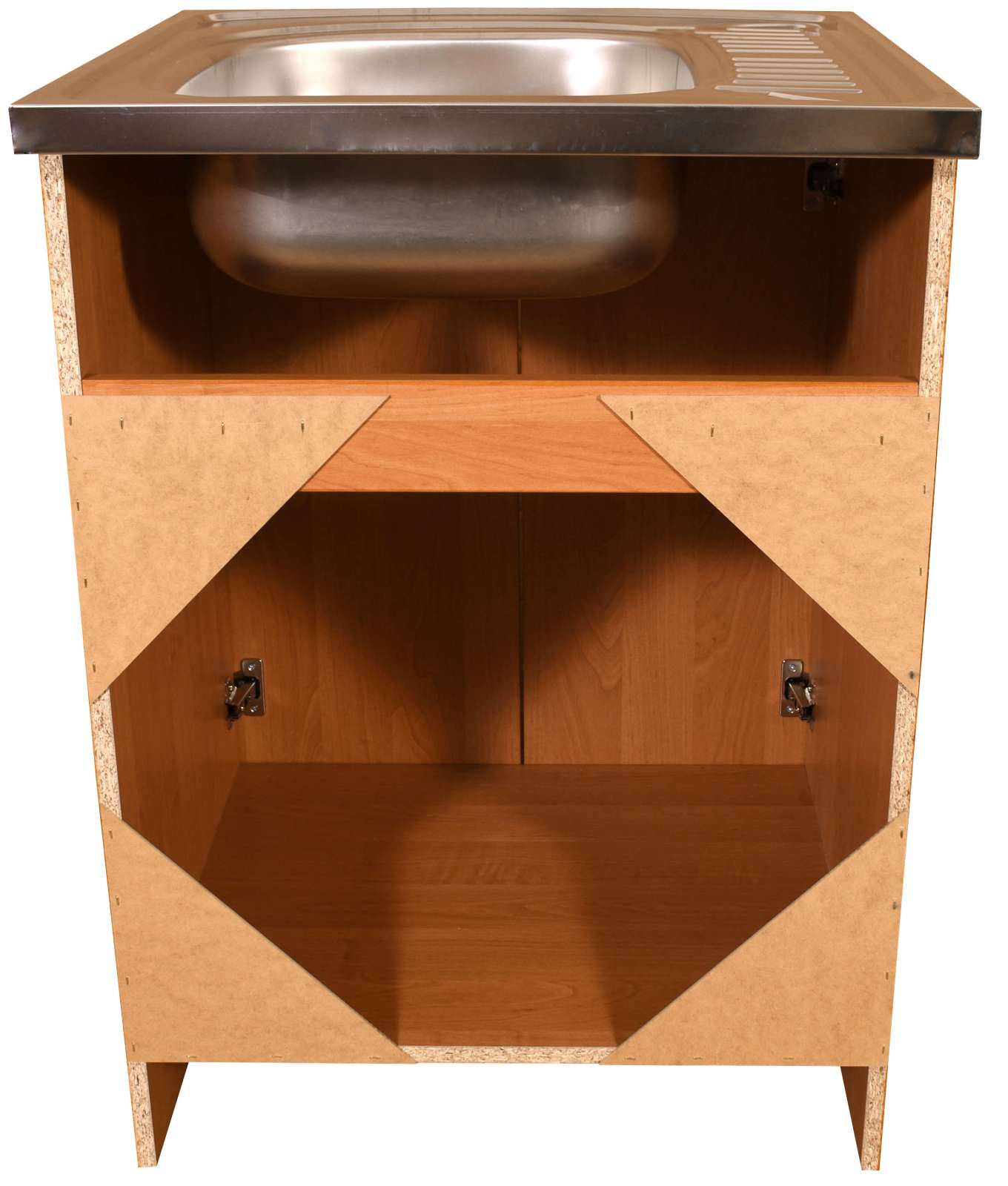 - Smontované kuchyňské skříňky pod dřez z laminované dřevotřísky o tloušťce 16 mm s plastovou hranou ABS