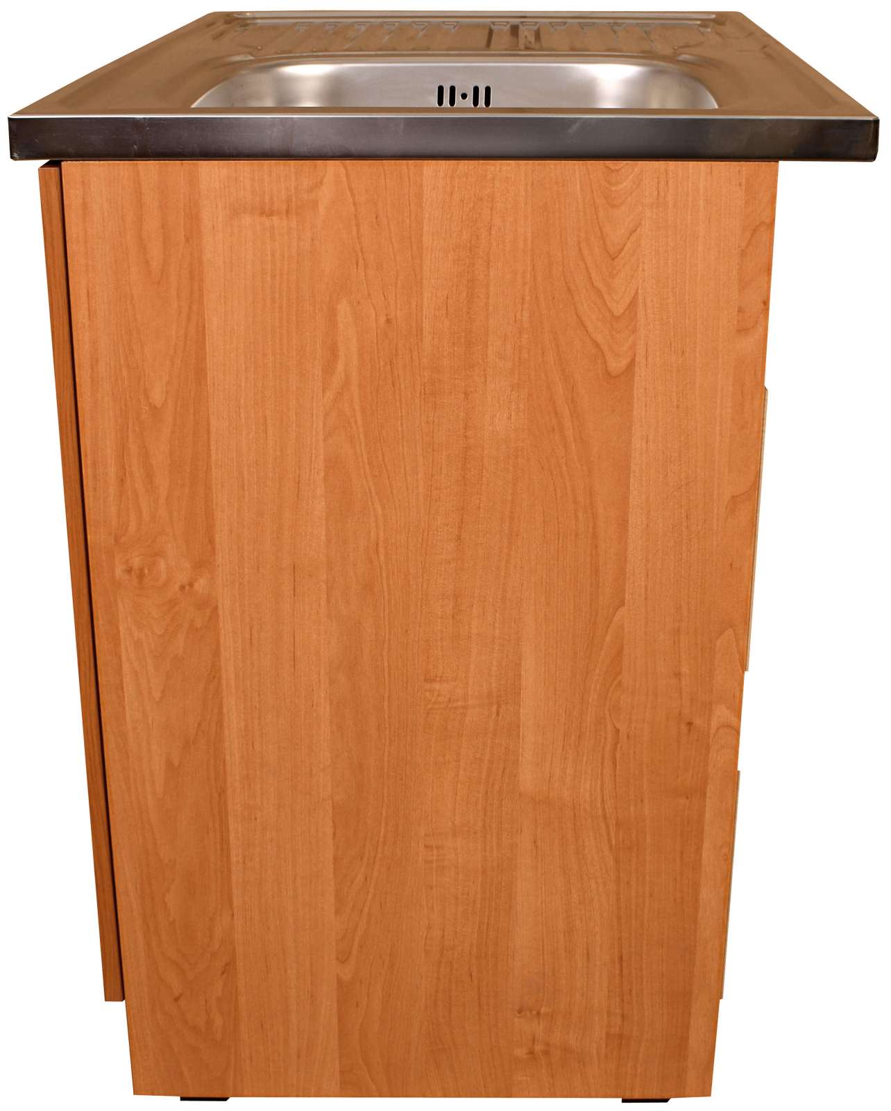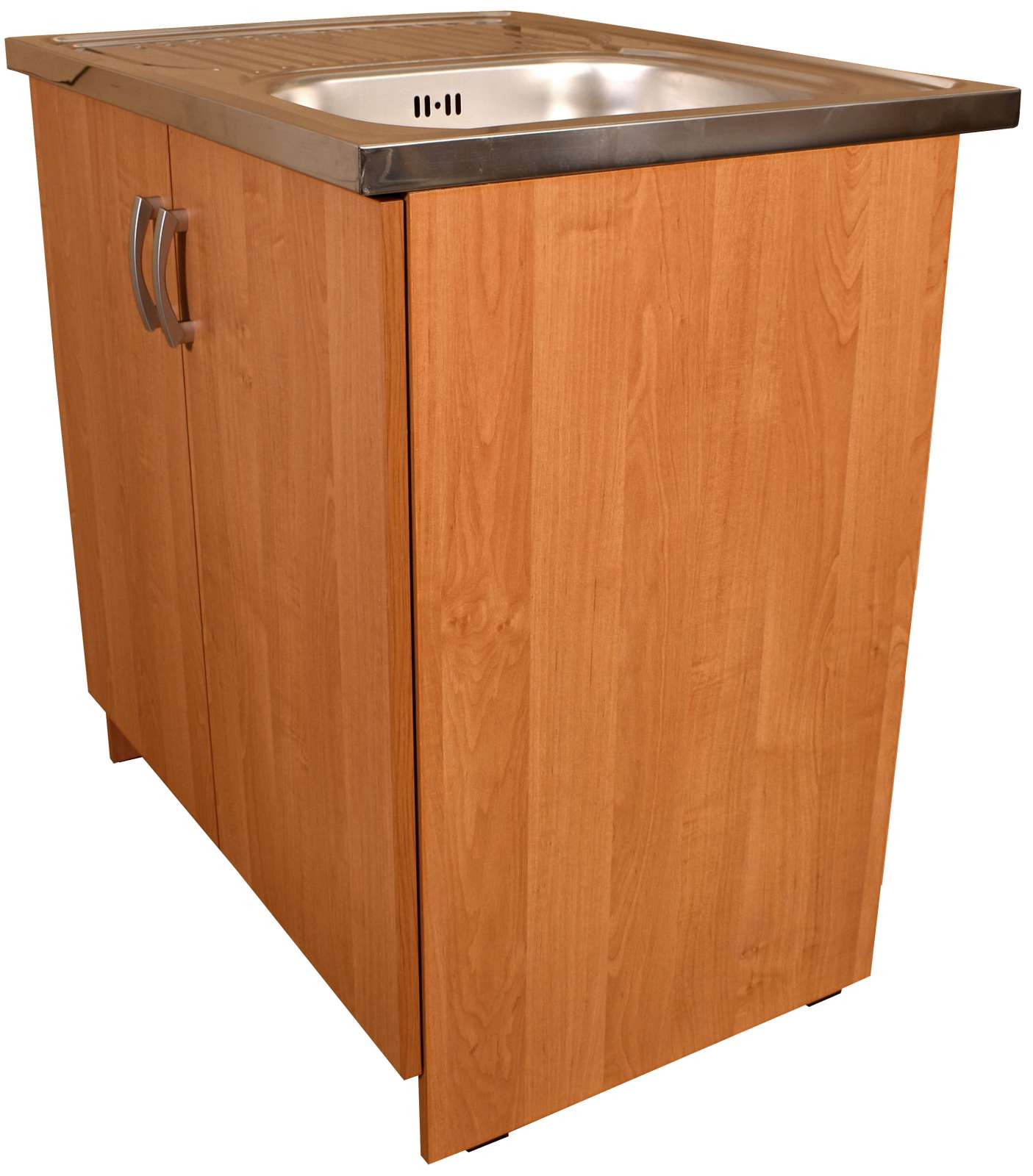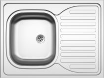 Celoplošný nerezový dřez s odkapem 80 x 60 x 3 cm je dodáván zvlášť . Dřez je nerezový o síle plechu 0,5 mm a dodávám ho včetně sifonu. Umísťuje se přímo na dřezovou skříňku šíře 80 cm pomocí montážní sady nebo montážním lepidlem(není součástí). Hloubka vaničky je 15 cm. Je oboustranný, tedy ho lze umístit s vaničkou vlevo i vpravo. Dřez nemá otvor pro stojánkovou baterii, lze doobjednat formou poznámky v objednávce, ale je nutné napsat orientaci dřezu např. “odkap vpravo”.