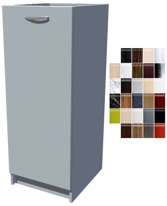 Dvířka jsou z lesklé MDF, tedy fólie na dřevovláknité desce. Povrch dvířek, kromě vzhledu a možnostem výběru, vyniká také dlouhou životností a snadnou údržbou. Korpus skříňky je vyrobený z laminované dřevotřískové desky a má hrany z ABS, které ho chrání před vlhkostí a mechanickým poškozením.