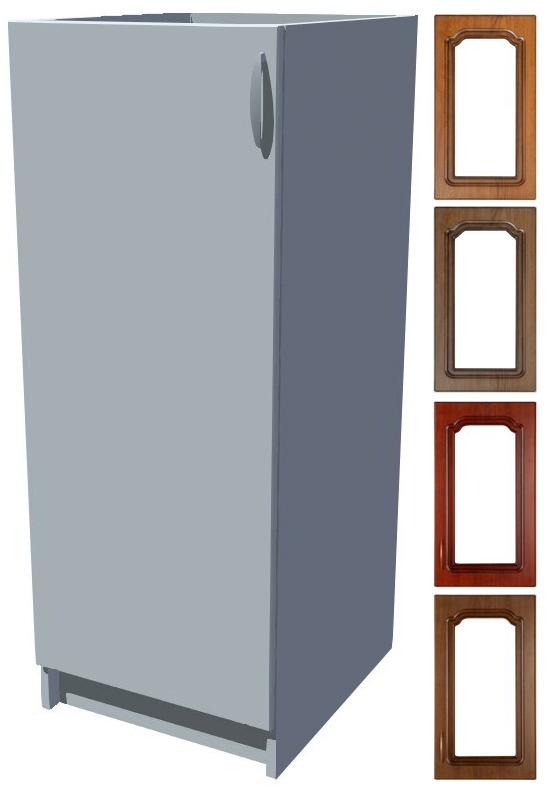 50 cm široká skříňka je jednodveřová a na pevném soklu vysokém 10 cm. Celková výška i se soklem je 128 cm. Hloubka korpusu je 56 cm a i s dvířky nepřesáhne celková hloubka skříňky 58 cm. Za skříňkou již není žádný prostor pro elektrické zásuvky, vedení vody, plynu apod. Ve skříňce jsou dvě volné police.