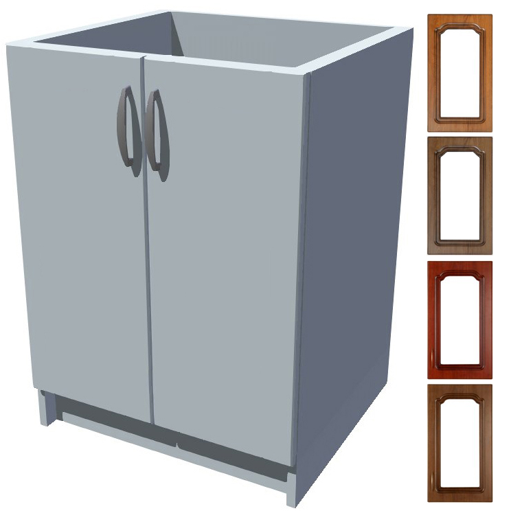 60 cm široká skříňka je dvojdveřová a na pevném soklu vysokém 10 cm. Celková výška i se soklem je 82 cm. Hloubka korpusu je 50 cm a i s dvířky nepřesáhne celková hloubka skříňky 52 cm. Díky tomu za skříňkou vzniká prostor cca 11 cm pro vedení vody, plynu, zásuvek apod. Uvnitř skříňky je jedna police. Vršek skříňky je otevřený a jsou zde umístěny jen příčky k uchycení pracovní desky.