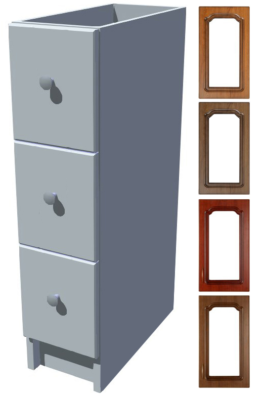 Skříňku skládájící se z dvířek a těla (korpusu) dodávám již smontovanou. Před vložením zboží do košíku zvolte v nabídce pod tímto textem stranu otvírání, barvu dvířek a korpusu. Barvy se dají kombinovat - proto můžete volit v odlišných barvách dvířka i korpus. Čela šuplíků jsou předvrtaná pro úchytku Bolero knoflík (ve stejném provedení jako úchytky Bolero), které jsou ke skříňce zdarma a nebo si vyberte jiné ZDE.