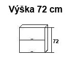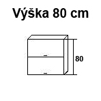 50 cm široká skříňka je dvojdveřová, vysoká 72 cm nebo 80 cm. Hloubka korpusu je 30 cm a i s dvířky nepřesáhne celková hloubka skříňky 32 cm.