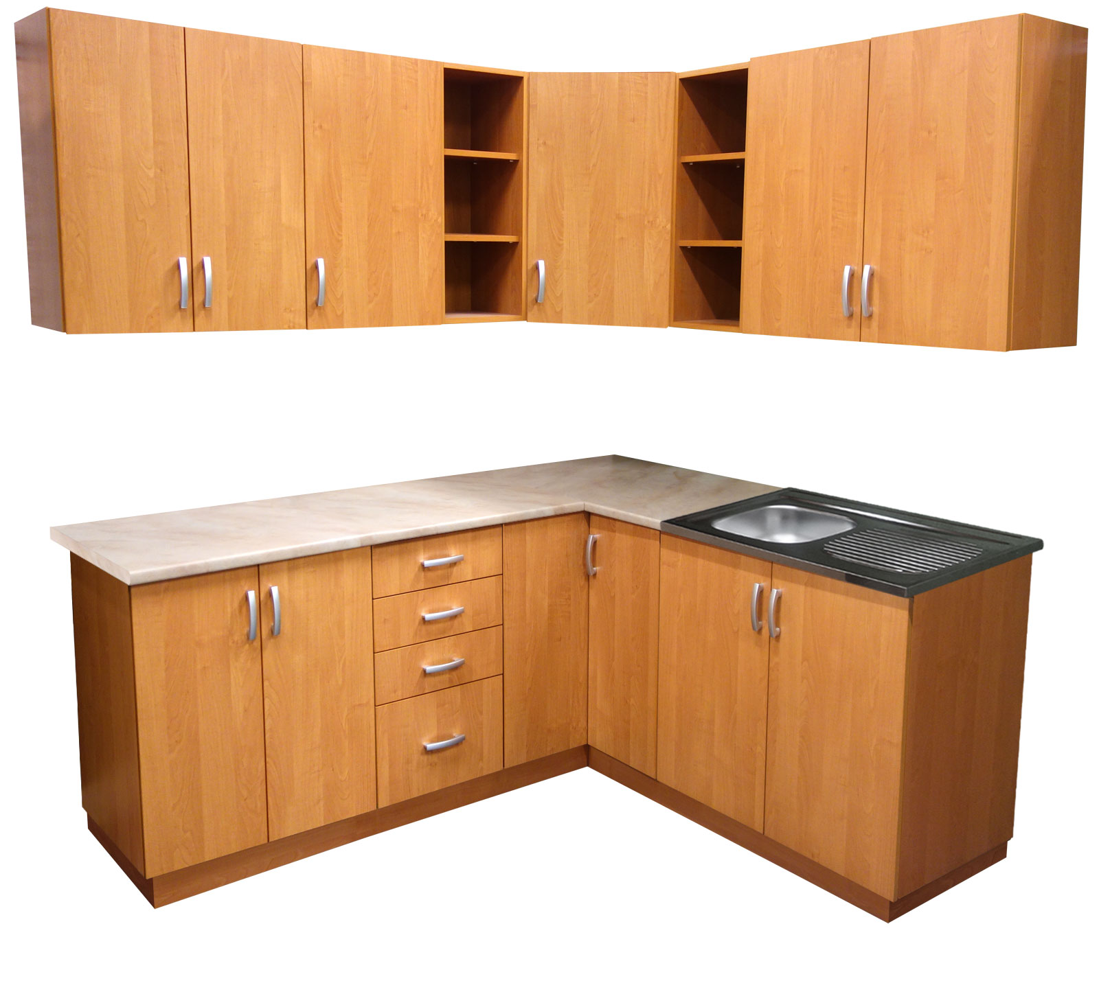 Kuchyně se skládá ze skříněk: Spodní z leva: 80 cm 2D, 40 cm šuplíky, spodní roh, 80 cm dřez. Horní: 80 cm 2D, 40 cm 1D, 30 cm police, rohová skříňka, 30 cm police, 80 cm 2D. Jednotlivé skříňky dodám již pevně smontované. Záleží na zákazníkovi, jak si je poskládá a jaká bude finální podoba kuchyně. Ke kuchyni vám dodám zdarma úchyty Diana. Povrch dvířek je hladký a omyvatelný. Korpus i dvířka jsou vyrobeny z laminovaných dřevotřískových desek LTD. Tento materiál je velmi odolný a výborný na údržbu. Hrany skříněk jsou opatřeny systémem ABS, který je chrání před vlhkostí a mechanickým poškozením. Aktuální nabídka pracovní desky pouze na dotaz - 775 775 779.