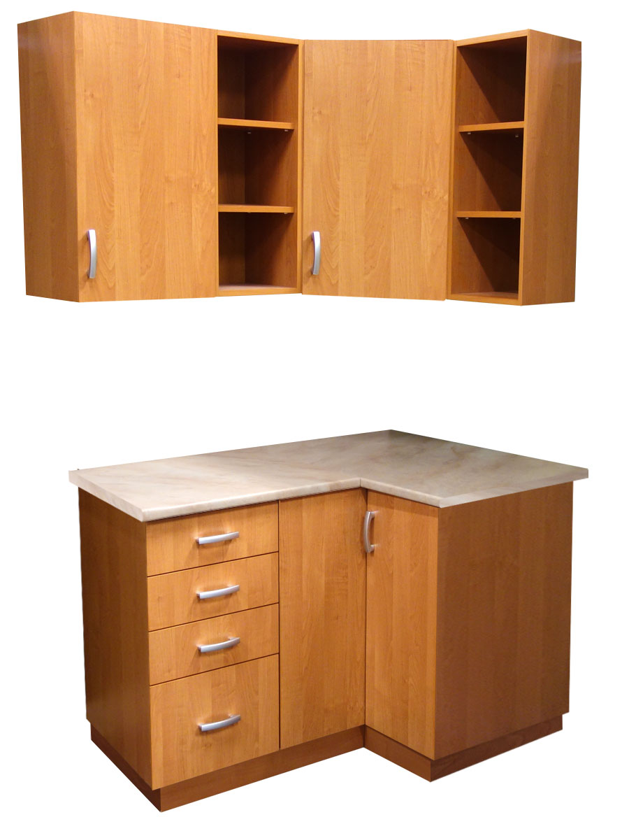 Kuchyně se skládá ze skříněk: Spodní z leva: šuplíky 40 cm, spodní roh. Horní: 40 cm pravá, 30 cm police, rohová skříňka pravá, 30 cm police. Jednotlivé skříňky dodám již pevně smontované. Záleží na zákaznikovi, jak si je poskládá a jaká bude finální podoba kuchyně. Ke kuchyni vám dodám zdarma úchyty Diana. Povrch dvířek je hladký a omyvatelný. Korpus i dvířka jsou vyrobeny z laminovaných dřevotřískových desek LTD. Tento materiál je velmi odolný a výborný na údržbu. Hrany skříněk jsou opatřeny systémem ABS, který je chrání před vlhkostí a mechanickým poškozením. Aktuální nabídka pracovní desky pouze na dotaz - 775 775 779.