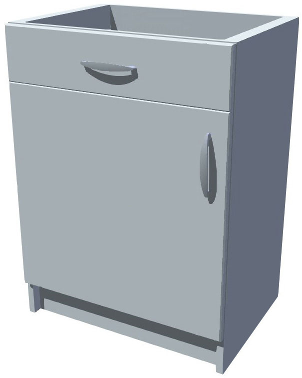 50 cm široká skříňka je jednodveřová, na pevném soklu vysokém 10 cm. Celková výška i se soklem je 82 cm. Hloubka korpusu je 50 cm a i s dvířky nepřesáhne celková hloubka skříňky 52 cm. Díky tomu za skříňkou vzniká prostor cca 6 cm pro vedení vody, plynu, zásuvek apod. Uvnitř skříňky je jedna police. Vršek skříňky je otevřený, jsou zde umístěny pouze příčky k uchycení pracovní desky.