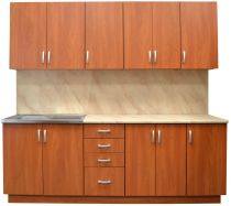 Ke skříňce si lze v kategorii příslušenství doobjednat pracovní desku, sokly a těsnící nebo závěsné lišty.