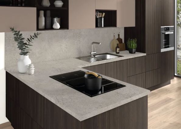 Dekor Granit Vercelli antracitový je velmi neutrální varianta pro pracovní desky se vzhledem kamene. Směs teplých a studených šedých barev umožňuje více různých kombinací. I přes svou neutralitu vypadá velmi autenticky, v neposlední řadě díky matně lesklému efektu povrchové struktury ST89 Mineral Rock.