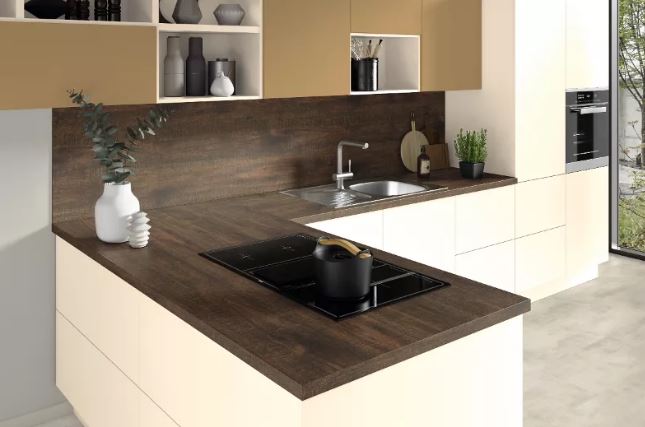 Povrch pracovních desek Egger je vysoce odolný proti nárazům a poškrábání, odpuzuje vlhkost, je nezávadný pro potraviny a snadno se udržuje.