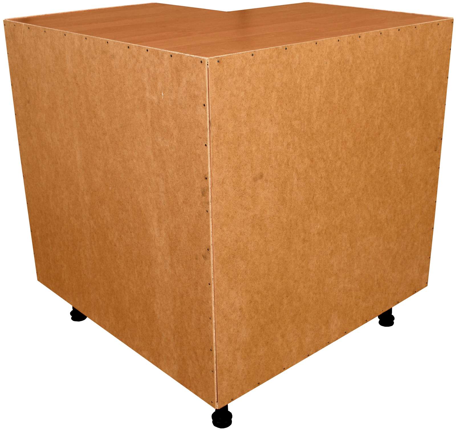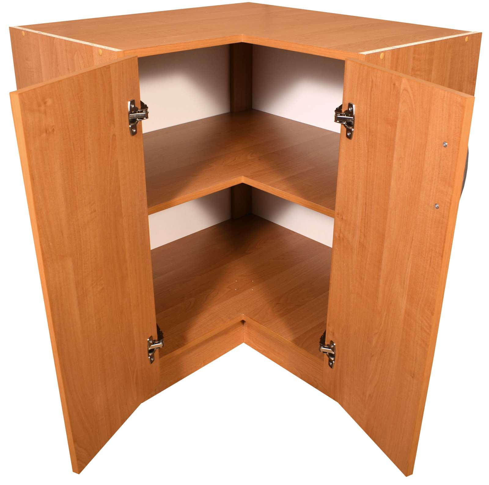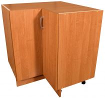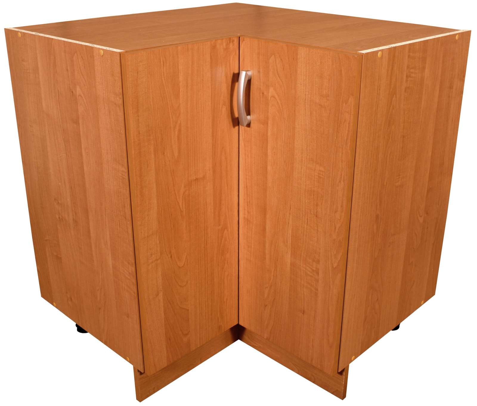 Spodní kuchyňská skříňka má výšku 82 cm včetně 10 cm vysokých rektifikačních nožiček. Hloubka korpusu po stranách je 50 cm a i s dvířky nepřesáhne celková hloubka skříňky 52 cm. Díky tomu za skříňkami vzniká prostor cca 6 cm pro vedení vody, plynu apod. Skříňka potřebuje prostor 90 x 90 cm. Skutečný rozměr skříňky je 84 x 84 cm. Z horní části je zakrytá. Skříňka je s dvoudveřovým otvíráním a úložný prostor je rozdělen jednou policí.