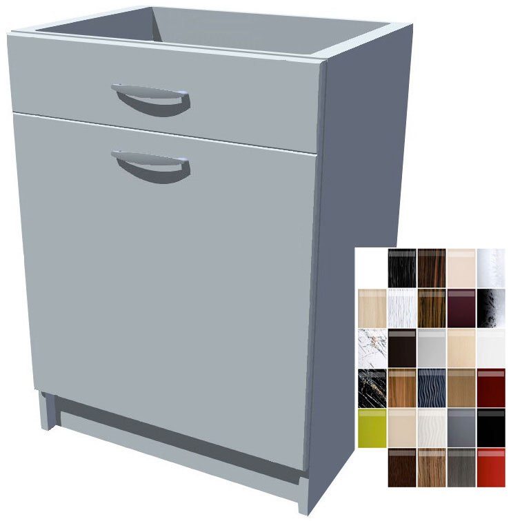 Dodávám smontované. Šířka 60 cm, výška 82 cm, hloubka 52 cm. Široký výběr barev dvířek i korpusů.