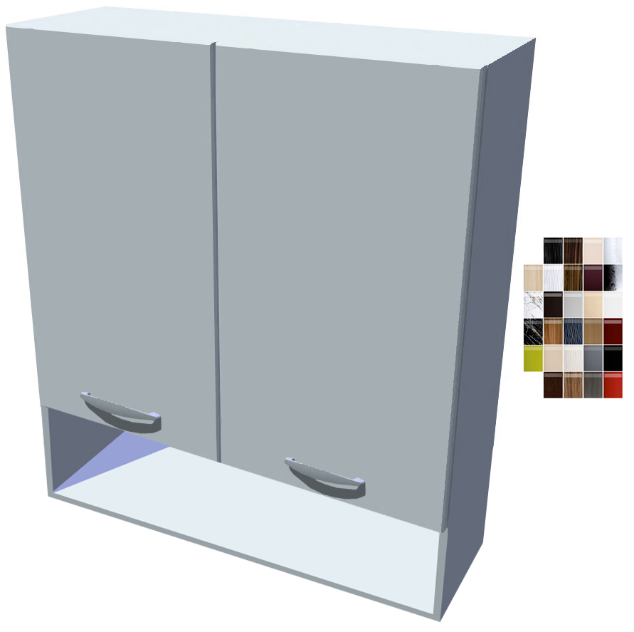 80 cm široká skříňka je dvojdvéřová, vysoká 86 (72+14) cm. Polička pod dvířky je vysoká 14 cm. Hloubka korpusu je 30 cm a i s dvířky nepřesáhne celková hloubka skříňky 32 cm. Uvnitř skříňky jsou dvě police. Skříňka má nastavitelné úchyty pro upevnění na závěsné liště.
