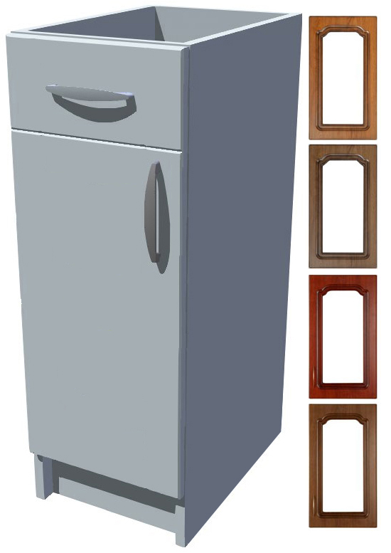 30 cm široká skříňka je jednodveřová a na pevném soklu vysokém 10 cm. Celková výška i se soklem je 82 cm. Hloubka korpusu je 50 cm a i s dvířky nepřesáhne celková hloubka skříňky 52 cm. Díky tomu za skříňkou vzniká prostor cca 11 cm pro vedení vody, plynu, zásuvek apod. Uvnitř skříňky je jedna police. Vršek skříňky je otevřený a jsou zde umístěny jen příčky k uchycení pracovní desky.