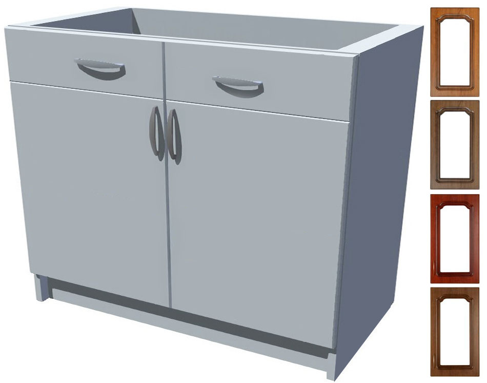 100 cm široká skříňka je jednodveřová a na pevném soklu vysokém 10 cm. Celková výška i se soklem je 82 cm. Hloubka korpusu je 50 cm a i s dvířky nepřesáhne celková hloubka skříňky 52 cm. Díky tomu za skříňkou vzniká prostor cca 11 cm pro vedení vody, plynu, zásuvek apod. Uvnitř skříňky je jedna police. Vršek skříňky je otevřený a jsou zde umístěny jen příčky k uchycení pracovní desky.