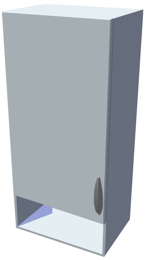 40 cm široká skříňka je vysoká je 86 (72+14) cm. Hloubka korpusu je 30 cm a i s dvířky nepřesáhne celková hloubka skříňky 32 cm.