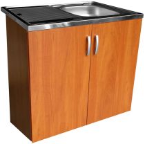 Skříňka včetně celoplošného nerezového dřezu 100 x 60 cm.