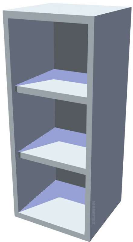 30 cm široká skříňka obsahuje dvě police. Balení neobsahuje závěsy. Skříňka se montuje k vedlejším skříňkám.