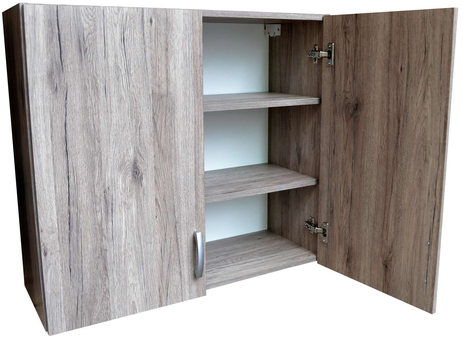 Dolní skříňky mají včetně nožiček zakryté soklem(10cm) výšku 82 cm. Hloubka korpusu je 50 cm a i s dvířky nepřesáhne celková hloubka skříněk 52 cm. Díky pracovní desce o šíře 60 cm vzniká za skříňkami prostor 6 cm pro vedení vody, plynu apod.. Horní skříňky mají výšku 72 cm. Hloubka korpusu je 30 cm a i s dvířky nepřesáhne celková hloubka skříňky 32 cm. Horní skříňky dodáváme včetně nastavitelných závěsů a polic.