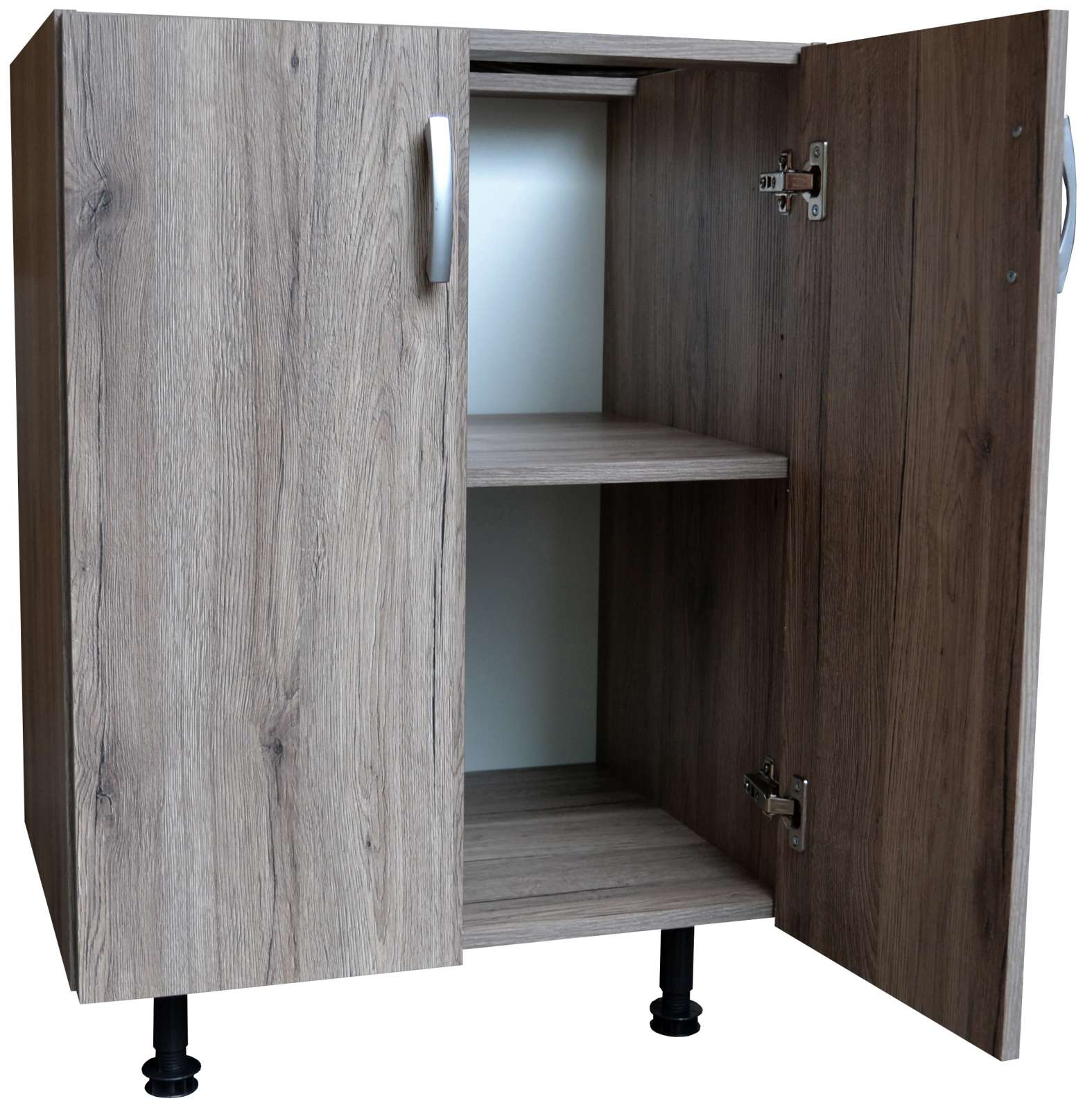 Vše je vyrobeno z kvalitní laminované dřevotřískové desky s ABS hranami (plastové hrany). Povrch skříňky je snadno omyvatelný. Spodní skříňky jsou na retifikačních nožkách. Můžete si dokoupit kvalitní, voděodolný sokl, také vodovodní baterii, závěsnou lištu a pracovní desku.