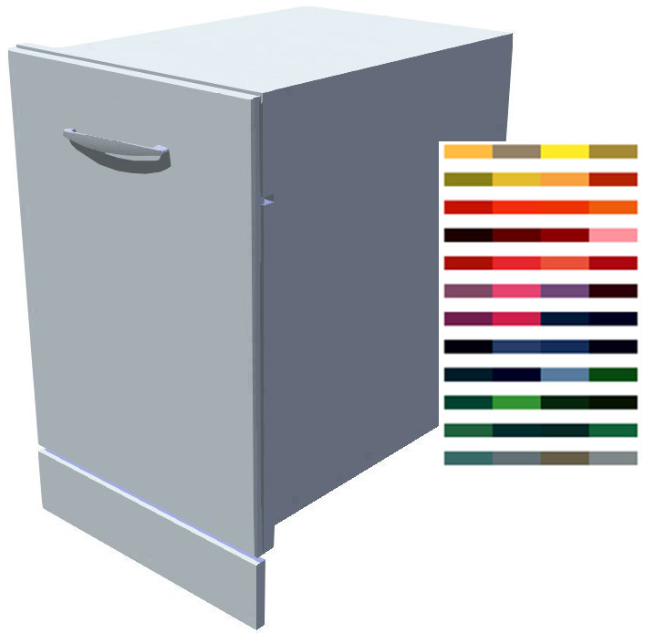 Šířka 45 cm, výška podle myčky. Výběr barvy dvířek, korpusu.