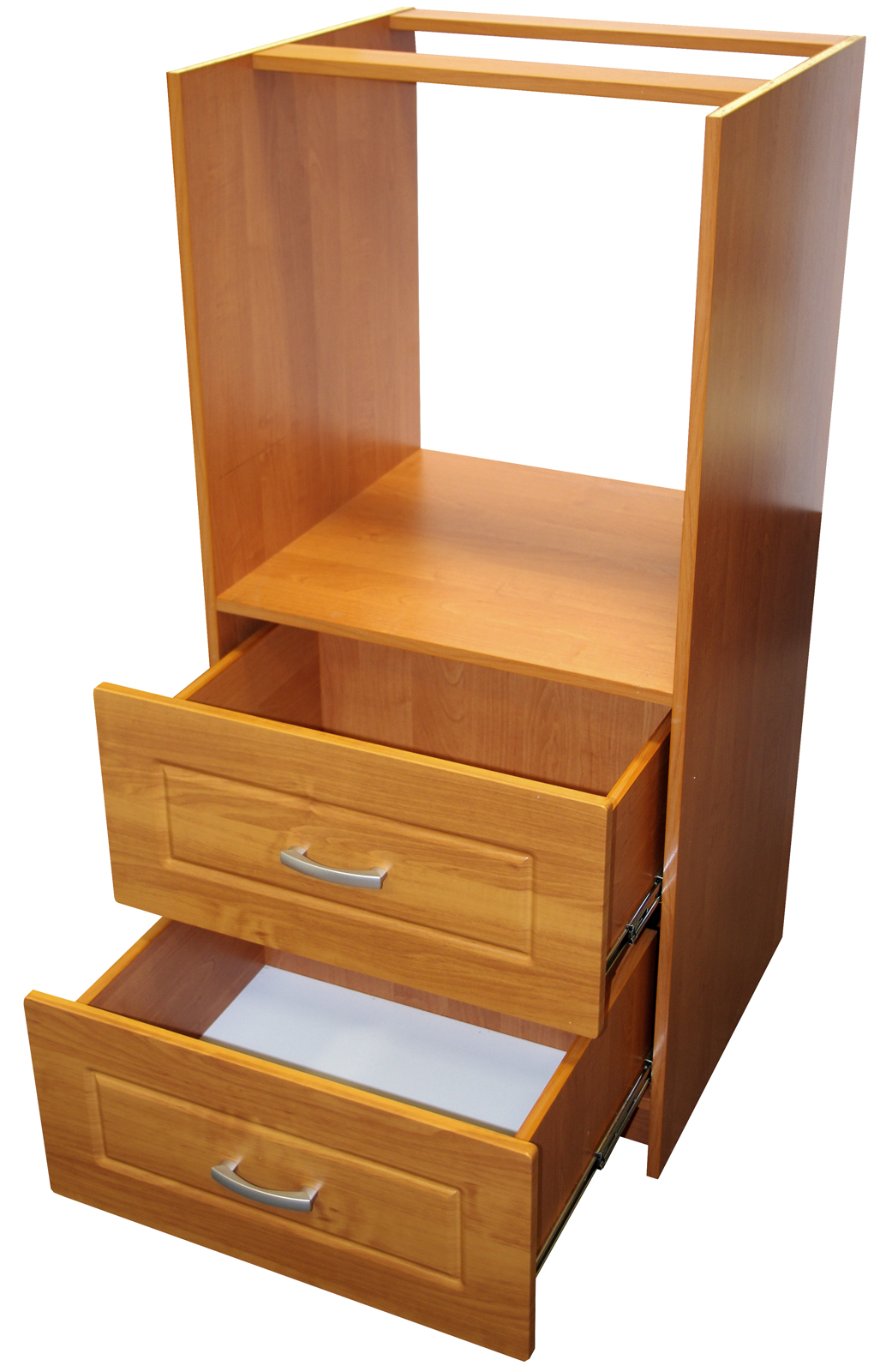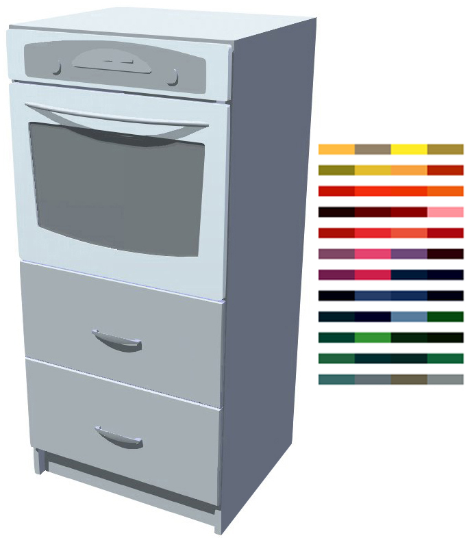 60 cm široká skříňka je na pevném soklu vysokém 10 cm. Celková výška i se soklem je 128 cm. Hloubka korpusu je 56 cm a i s dvířky nepřesáhne celková hloubka skříňky 58 cm. Za skříňkou již není žádný prostor pro vedení vody, plynu, elektrické zásuvky apod. V dolní části jsou dva šuplíky s ložiskovými pojezdy. Skříňka není nahoře zakrytá, má jen příčky k uchycení pracovní desky.
