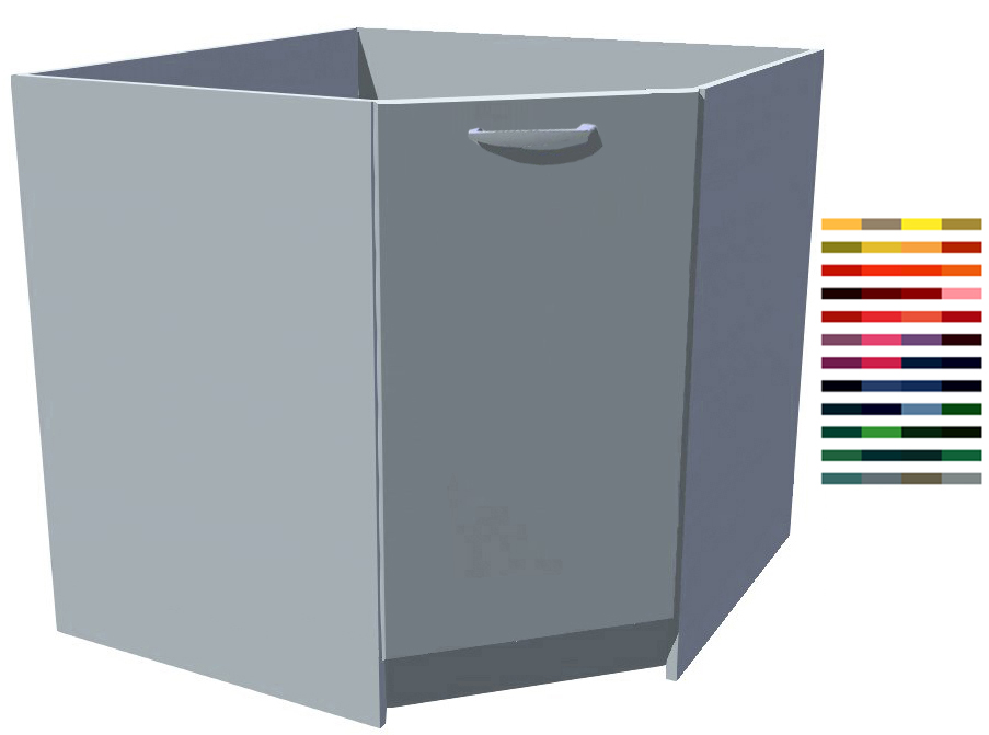 Šířka 90 x 90 cm, výška 82 cm, hloubka 52 cm. Výběr barvy dvířek, korpusu.