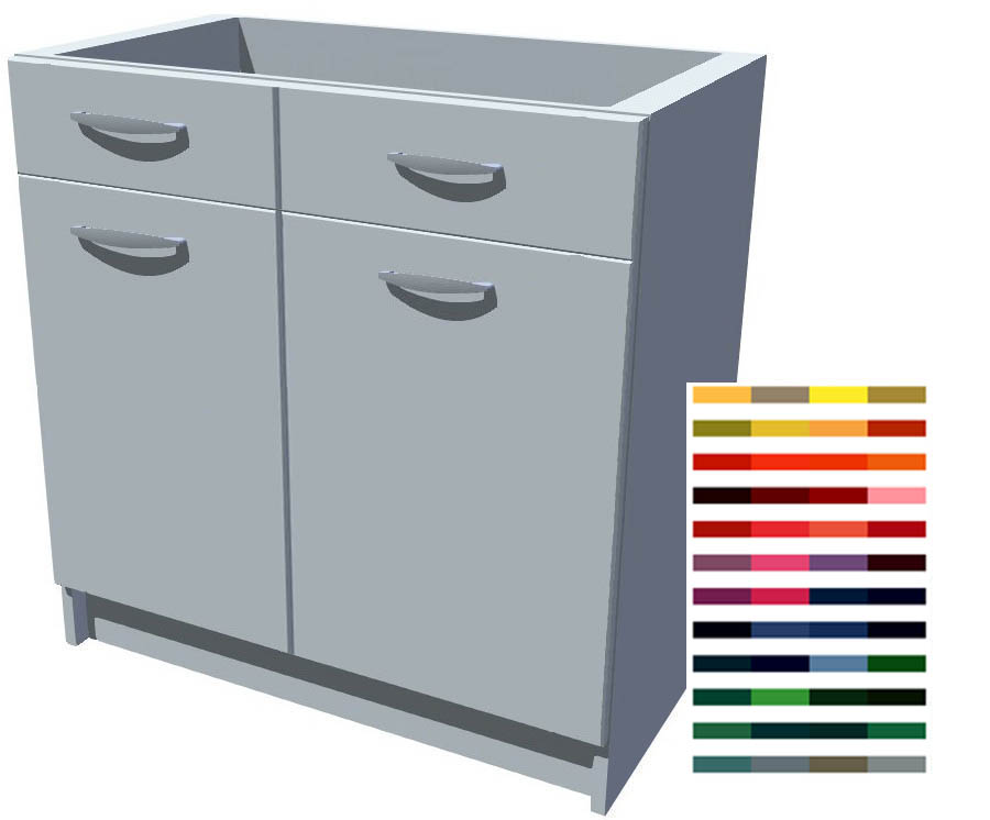 Šířka 80 cm, výška 82 cm, hloubka 52 cm. Výběr barvy dvířek, korpusu, strany otvírání.