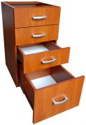 U šuplíků je použitý mechanizmus otevírání s kovovými ložiskovými plnovýsuvy.
