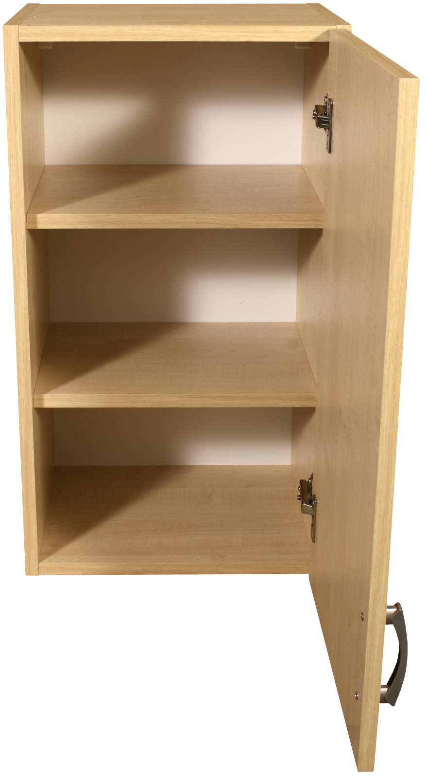 Horní kuchyňská skříňka má výšku 72 cm. Hloubka korpusu je 28 cm a i s dvířky nepřesáhne celková hloubka skříňky 32 cm.