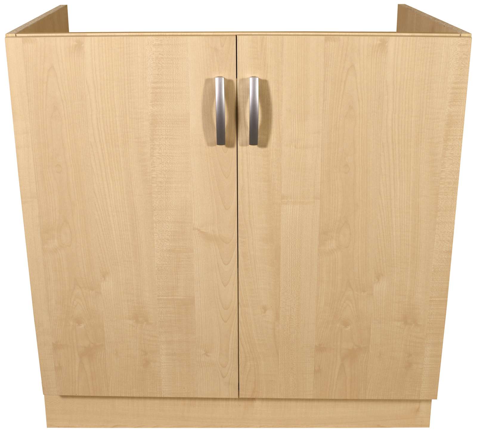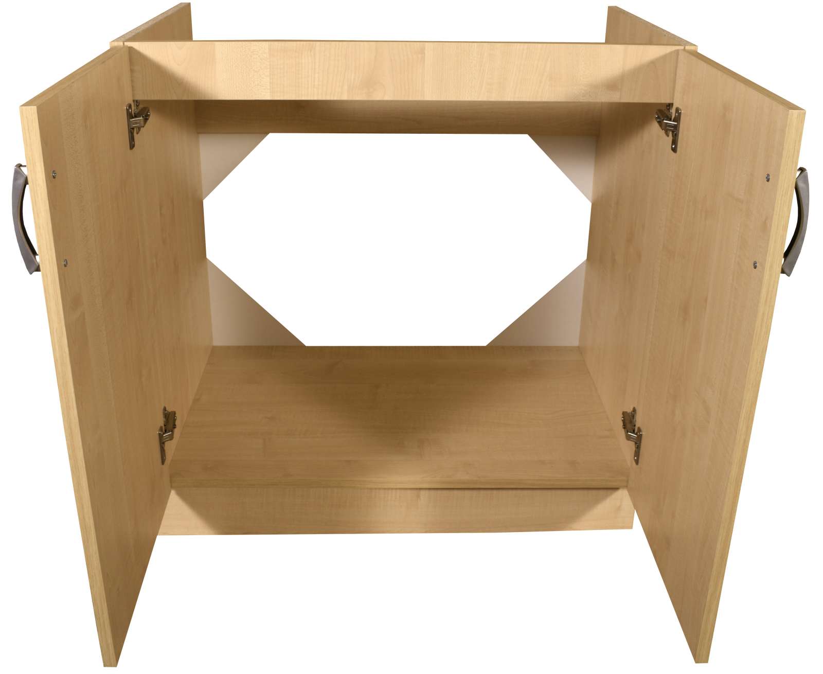 Spodní kuchyňská skříňka pod dřez má výšku 82 cm. Skříňku dodávám na 10 cm vysokých rektifikačních nožičkách. Ke skříňce na nožičkách dodám zdarma přední dřevěný sokl na zakrytí.