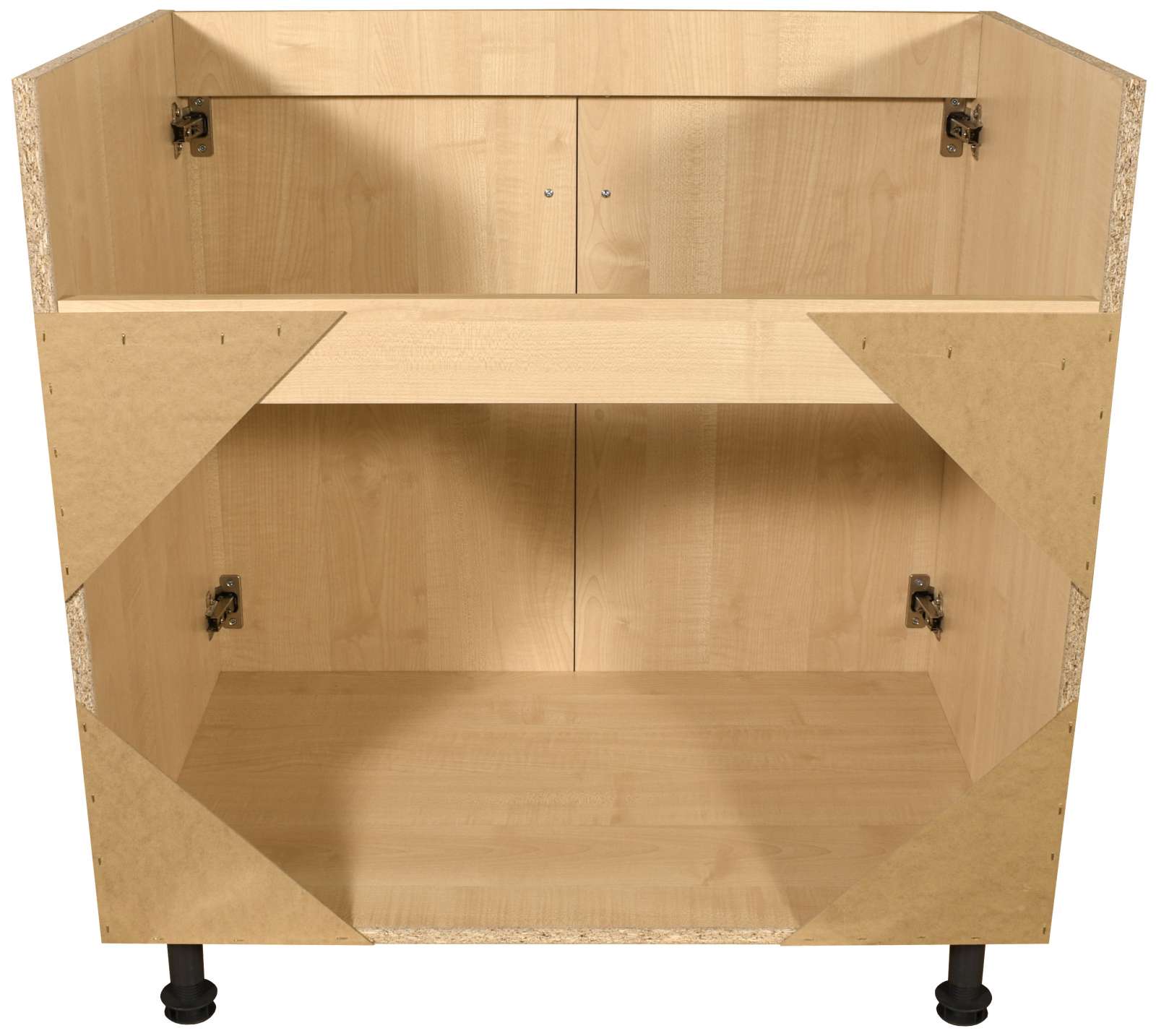 Hloubka korpusu je 50 cm a i s dvířky nepřesáhne celková hloubka skříňky 52 cm. Díky tomu za skříňkami vzniká prostor cca 6 cm pro vedení vody, plynu apod. Z horní části není zakrytá, má jen zpevňující příčky umístěné tak aby nepřekážely dřezu.